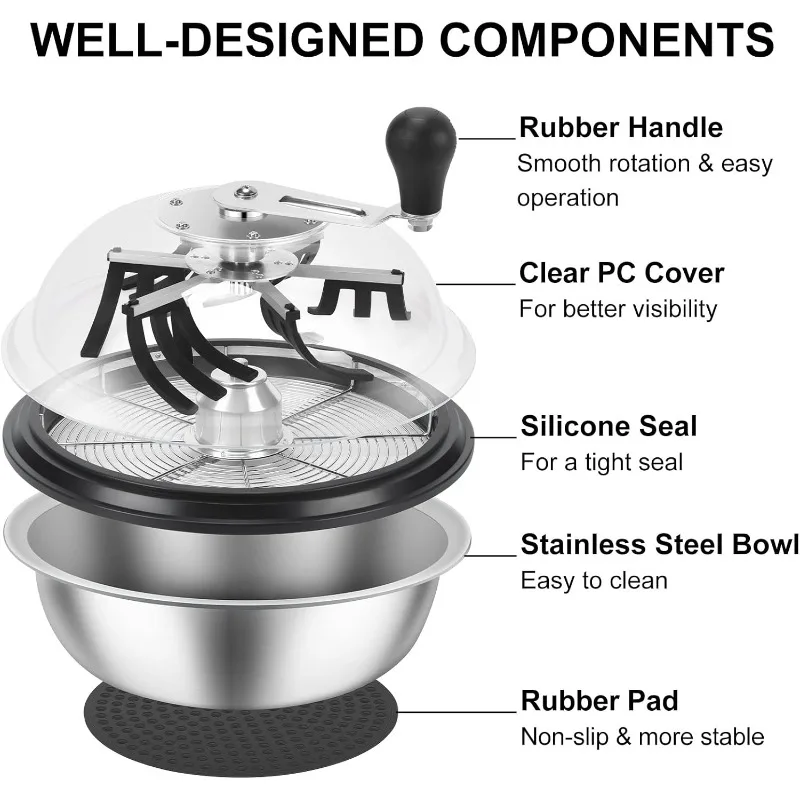 【Efficient Cutting】: Bud trimmer uses high-quality sharp blades and metal wheels for high-speed twisting and rotating cutting, allowing you to experience a smooth cutting experience during the trimming process; the stainless steel bottom bowl is not only easy to clean, but also can effectively collect the trimmed leaves, saving subsequent sorting time.