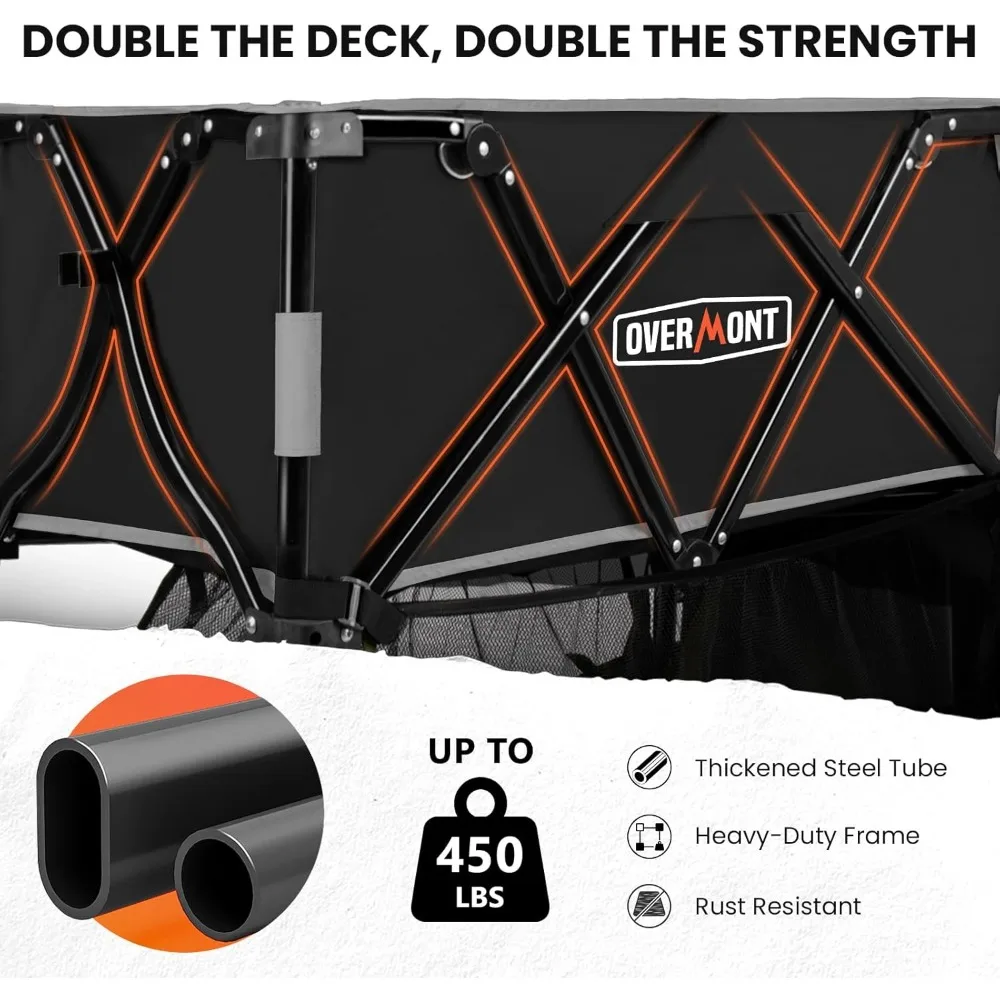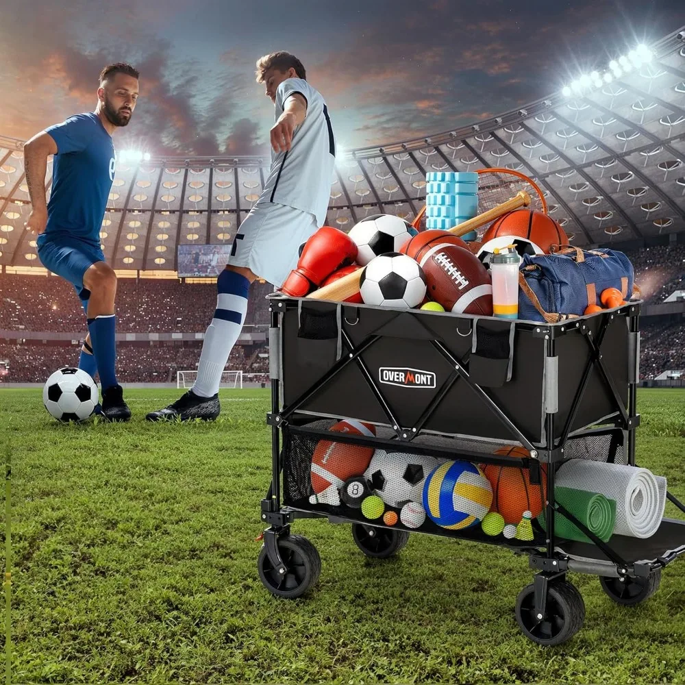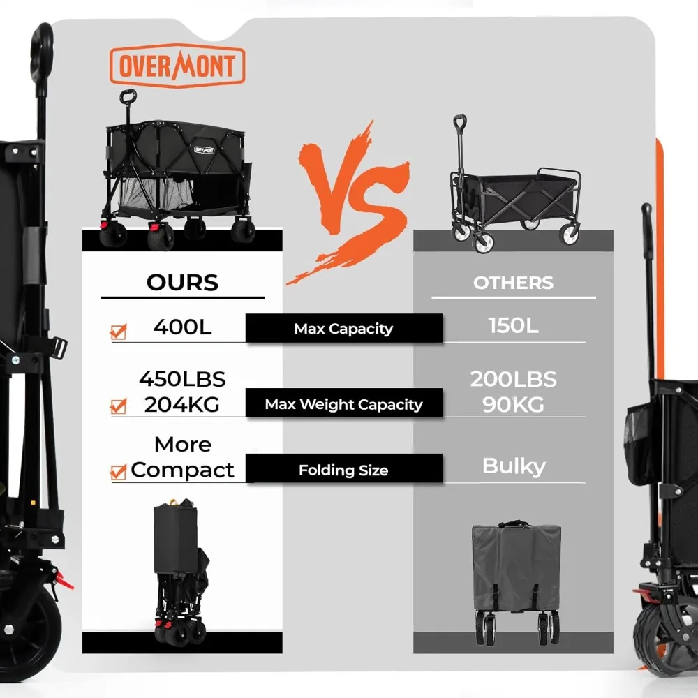 400L Foldable Double Decker Wagon - Large Capacity Collapsible Wagon Cart- 47" Extra Long Extender - All-Terrain Big Wheels