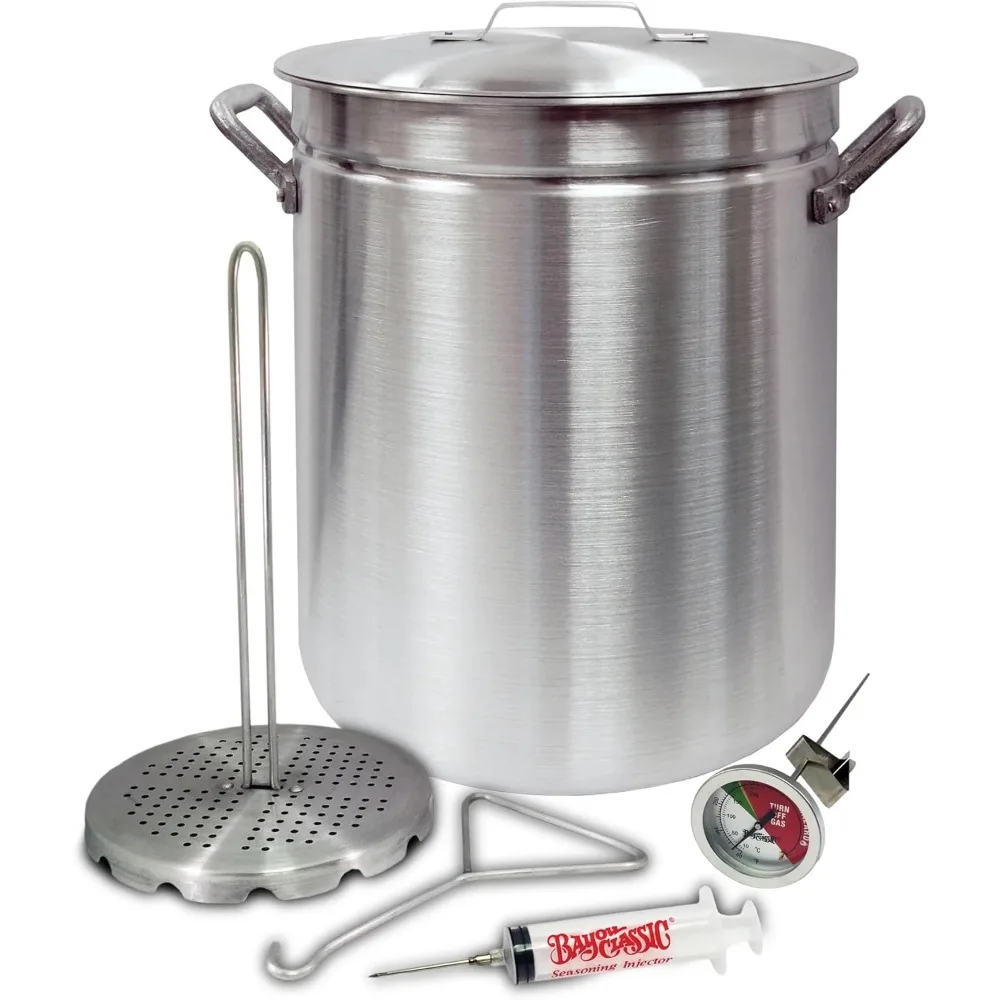 4225 42-qt Aluminum Grand Gobbler Turkey Features Vented Lid Heavy-Duty Riveted Handles Perforated Poultry Rack 12-in Stainless Fry Thermometer 2-oz Seasoning Injector